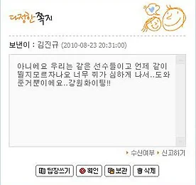 권순형 썸네일형 리스트형 꼴찌강원, 용광로축구 포항에 살아남을 수 있을까? 포항전 또 무실점 수비로 웃는다. 최근 포항 스틸러스만 만나면 기분 좋은 결과물을 냈던 강원 FC다. 이번에도 포항을 상대로 웃음을 되찾고자 한다. 강원은 13일 오후 7시 강릉종합경기장에서 ‘현대오일뱅크 K리그 2011’ 21라운드 포항과의 홈경기를 갖는다. 강원은 올 시즌 K리그 2/3를 마친 가운데 1승 3무 16패로 순위표 맨 아래에 머물러 있다. K리그 7경기 연속 패했다. 그러나 아직 시즌을 포기할 단계는 아니다. 10경기나 남아있다. 끝까지 포기하지 않는 굳은 의지로 아름다운 갈무리를 해야 한다. 이런 가운데 포항을 만나게 되는 건 나쁘지 않은 일이다. 2위 포항을 얕잡아 보는 건 아니다. 강원이 유독 포항과 겨룰 때마다 힘을 냈기 때문이다. 강원은 포항과의 역대 전적에서는 1승 1무 3패 .. 더보기 강원FC 첫승, 숨은 뒷이야기 부산아이파크와의 홈경기가 열린 지난 6월 11일 강릉종합경기장. 종료 5분 전 경기장을 찾은 팬들은 일제히 만세를 부르며 외쳤다. “이겼다! 이겼다!” 관중석에 앉아있던 2군 선수들은 ‘형’들이 보여준 투혼과 선전에 박수 보내며 눈시울을 붉혔다. 1군 선수들은 그런 ‘아우’들을 안아주며 “R리그 선두를 달리고 있는 너희가 보내준 긍정적 에너지에 힘을 얻은 건 우리”라고 말했다. 이날 풀타임으로 활약했던 우측면 수비수 이상돈은 “아리랑을 부르고 ‘이겼다’를 외치다 얼싸안고 눈물 흘리는 팬들을 보니 가슴이 뭉클해졌다”며 “끝까지 응원해준 팬들에게 진심으로 감사의 마음을 전한다”고 말했다. 함께 뛰었던 다른 선수들 역시 “같은 마음”이라고 입을 모아 말했다. 경기 종료 후 가진 공식기자회견에서 강원FC 김상호.. 더보기 최순호 감독 고별경기하던 날 2008년 12월 18일. 강원FC는 K리그 15번째로 팀을 창단하며 프로무대에 뛰어들었죠. 그 시작을 함께 하셨던 최순호 감독님. 강원FC 초대감독으로서 횟수로 3년째를 함께 하였고 올해에는 6강에 들겠다고 팬들과의 약속을 지키기 위해 노력했습니다. 그러나 정규리그 무득점 4연패. 이 슬픈 현실 앞에서 강원FC는 꼴찌로 내려앉았고 지난 4월 3일 홈에서 대전에 3골을 내주며 패함과 동시에 최순호 감독님은 용단을 내렸습니다. 스스로 강원FC의 사령탑에서 내려오겠다고 하신거죠. 이제 4경기밖에 치르지 않았다고, 너무 빠른 결정이 아니었냐고 누군가는 물었지만 감독님은 말씀하셨습니다. 앞으로 26경기나 남았기에 내가 빨리 떠나야한다고. 새로운 감독님 밑에서 변화의 시간을 가져한다고. 그래야 6강의 꿈을 이룰 .. 더보기 강원FC, 컵대회 전남전 통해 반전기회 마련할까 강원, 전남 상대로 리그컵 2연승 노린다. 리그컵을 발판 삼아 부진 탈출을 노리는 강원FC는 오늘 6일 오후 7시 강릉종합경기장에서 '러시앤캐시컵 2011' B조 2라운드 전남드래곤즈와 홈경기를 갖는다. 반전의 계기가 필요하다 강원은 지난 3일 '현대오일뱅크 K리그 2011' 4라운드 대전 시티즌과의 홈경기에서 0-3으로 졌다. 이창훈의 측면 돌파와 권순형의 강력한 슈팅 등이 눈에 띄었으나 마무리 부족이 드러났고 후반 중반 이후 내리 3골을 내줬다. 출발이 좋지 않다. 하지만 올 시즌이 최악의 출발은 아니다. 지난 시즌에도 초반 8경기에서 1승 2무 5패를 기록했다. 8경기 가운데 5경기가 무득점이었다. 지난 시즌과 비교해 실점은 눈에 띄게 줄었다. 그래도 K리그가 장기 레이스라는 걸 고려하면 분위기 반.. 더보기 통한의 자책골로 3연패 기록한 강원FC '통한의 자책골' 강원, 제주전 패배... K리그 3경기 연속 0-1 패 강원 FC가 불운에 시달리며 K리그 3연패를 기록했다. 강원은 20일 오후 3시 제주월드컵경기장에서 열린 ‘현대오일뱅크 K리그 2011’ 3라운드 제주 유나이티드와의 원정경기에서 백종환의 자책골로 0-1 패배를 기록했다. 강원은 K리그 3경기 연속 0-1 패배를 기록하며 최하위 탈출에 실패했다. 그리고 최근 제주 전 3연패를 기록했다. 강원은 지난 16일 ‘러시앤캐시컵 2011’ 광주 FC 전 베스트11에 큰 변화를 주지 않았다. 포백(4-Back) 수비에 박상진, 김진환 대신 오재석, 박지용을 선발로 내세웠다. 광주 전에서 5골 만들어 낸 공격진과 미드필드진은 그대로 기용했다. 강원은 지난해 7월 17일 제주와의 원정경기에서 0-.. 더보기 5골 골폭풍 강원, 제주 잡을까? '5골' 감 잡은 강원, 이번엔 제주 잡는다. 연패 탈출에 성공한 강원 FC가 2연승에 나선다. 강원은 20일 오후 3시 제주월드컵경기장에서 '현대오일뱅크 K리그 2011' 3라운드 제주 유나이티드와의 원정경기를 치른다. 시즌 개막 후 경남 FC, 대구 FC에게 연이어 0-1로 졌던 강원은 지난 16일 '러시앤캐시컵 2011' B조 1라운드에서 광주 FC를 5-0으로 대파했다. 시즌 3경기 만에 첫 승을 올렸다. 지난해와 비교해 첫 승 신고가 2경기 빨랐다. 앞선 2경기에서 좋은 경기 내용을 펼치고도 골을 넣지 못해 패하며 사기가 저하됐던 강원으로선 이번 광주 전 승리로 분위기 반전에 성공했다. 그리고 그 기세를 제주 전까지 이어가고자 한다. 마침내 터졌다 5골이었다. 전반 45분 동안 잠잠했던 광주 골.. 더보기 김영후vs유병수 대결 승자는? 강원FC, 인